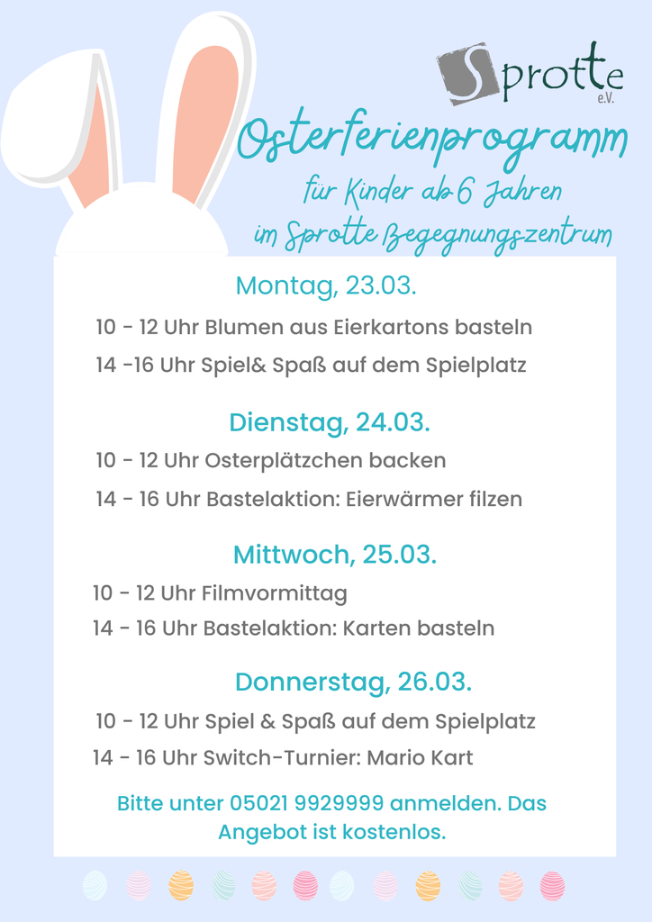 bietet aber vom 23.–26.03. ein Extra-Osterferienprogramm an.