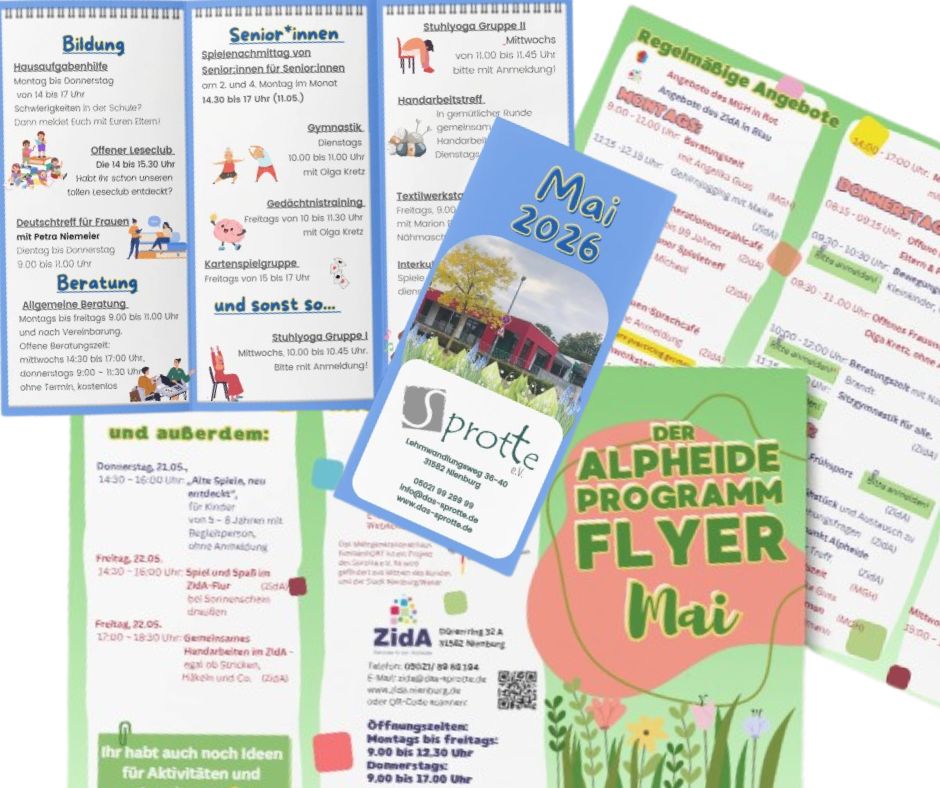 Der März bringt frischen Schwung in unsere Häuser! Ob Kinder, Familien, Seniorinnen oder Nachbarinnen – im Sprotte und im ZidA – Zuhause in der Alpheide erwartet Euch ein vielfältiges Programm mit Begegnung, Bewegung, Kreativität und Beratung.