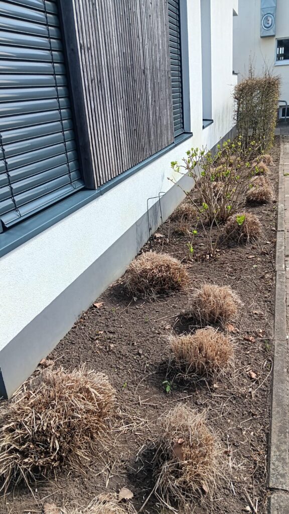 Mit professionellem Werkzeug wurden die Gräser in kurzer Zeit zurückgeschnitten und sorgten so schnell für einen frischen Frühlingslook. Gleichzeitig kümmerte sich ein Teil der Gruppe um eine leckere Stärkung für alle Helferinnen und Helfer.