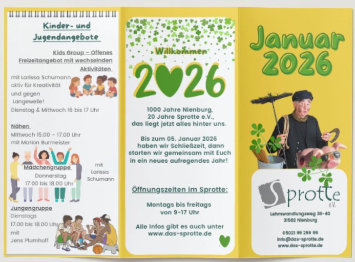 Der Februar im Sprotte steckt wieder voller Angebote für Kinder, Jugendliche, Erwachsene und Senior*innen. Der neue Flyer gibt einen kompakten Überblick über alle regelmäßigen und besonderen Termine im kommenden Monat.